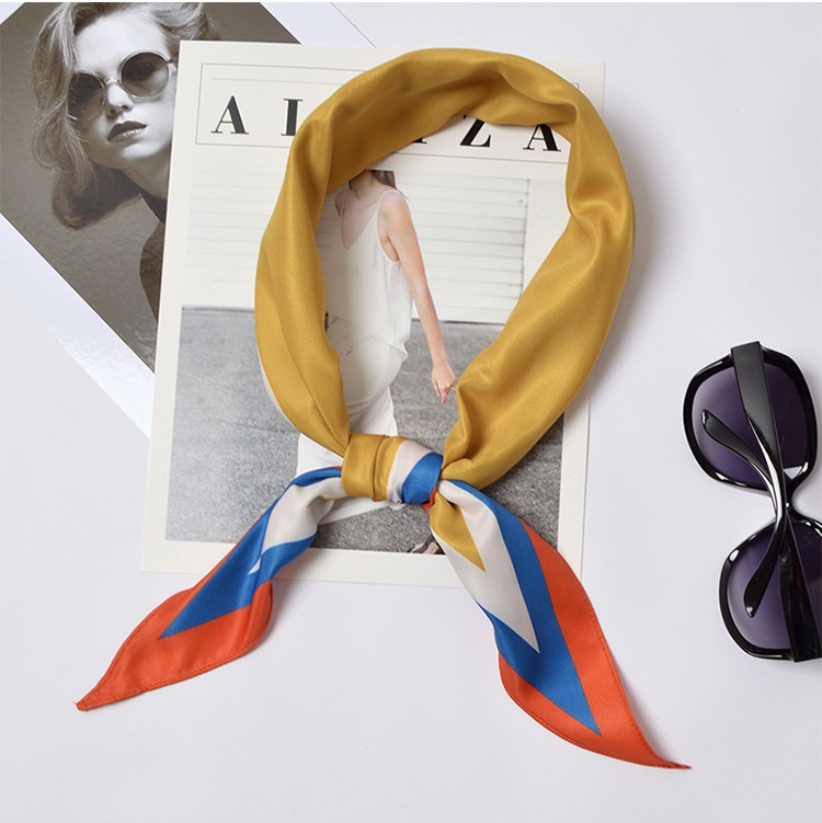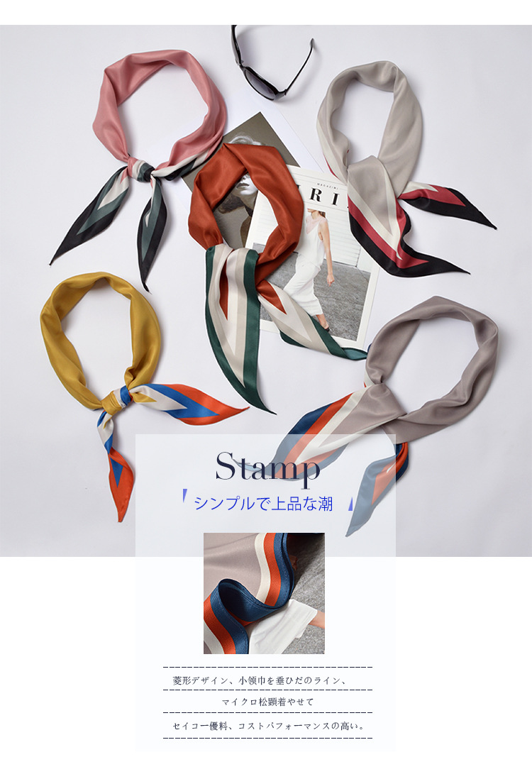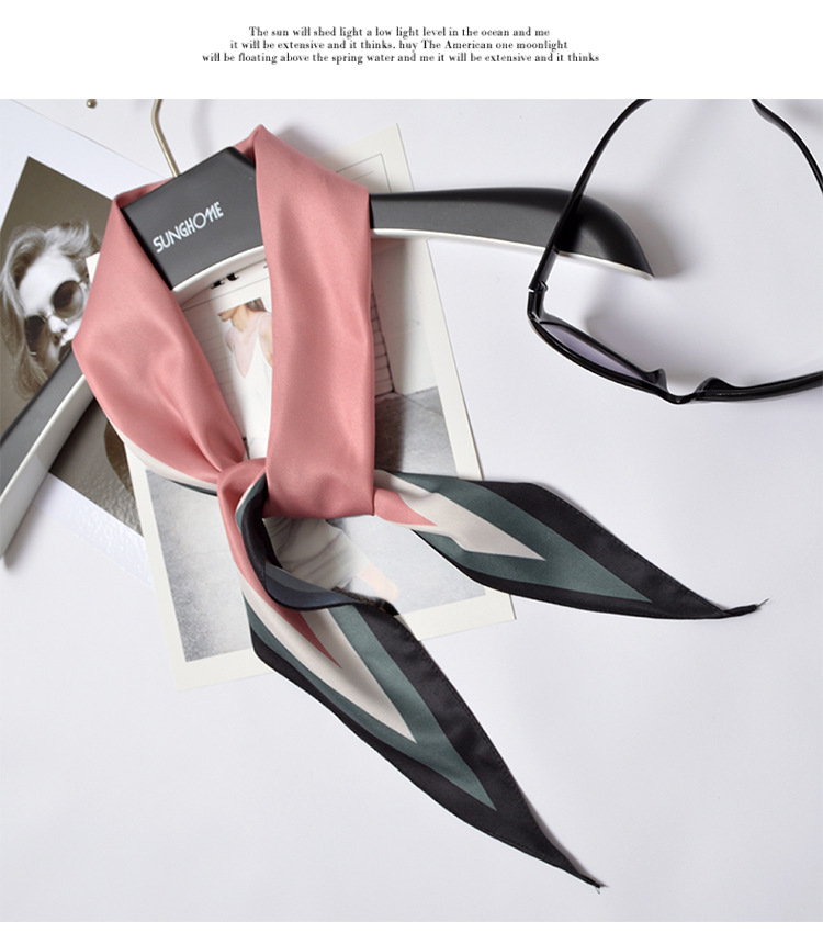 - Kiểu dáng vát dài, hai đầu nhỏ dần khi thắt tạo dáng thanh mảnh. Khăn hợp thắt ngoài sơ mi hoặc các bộ trang phục trơn một màu. Ngoài ra bạn có thể dùng khăn để quấn quai túi, cột tóc, làm turban ...