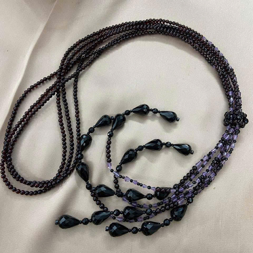MS142 - Vòng cổ dáng dài mix hồng lựu, hổ phách, thạch anh