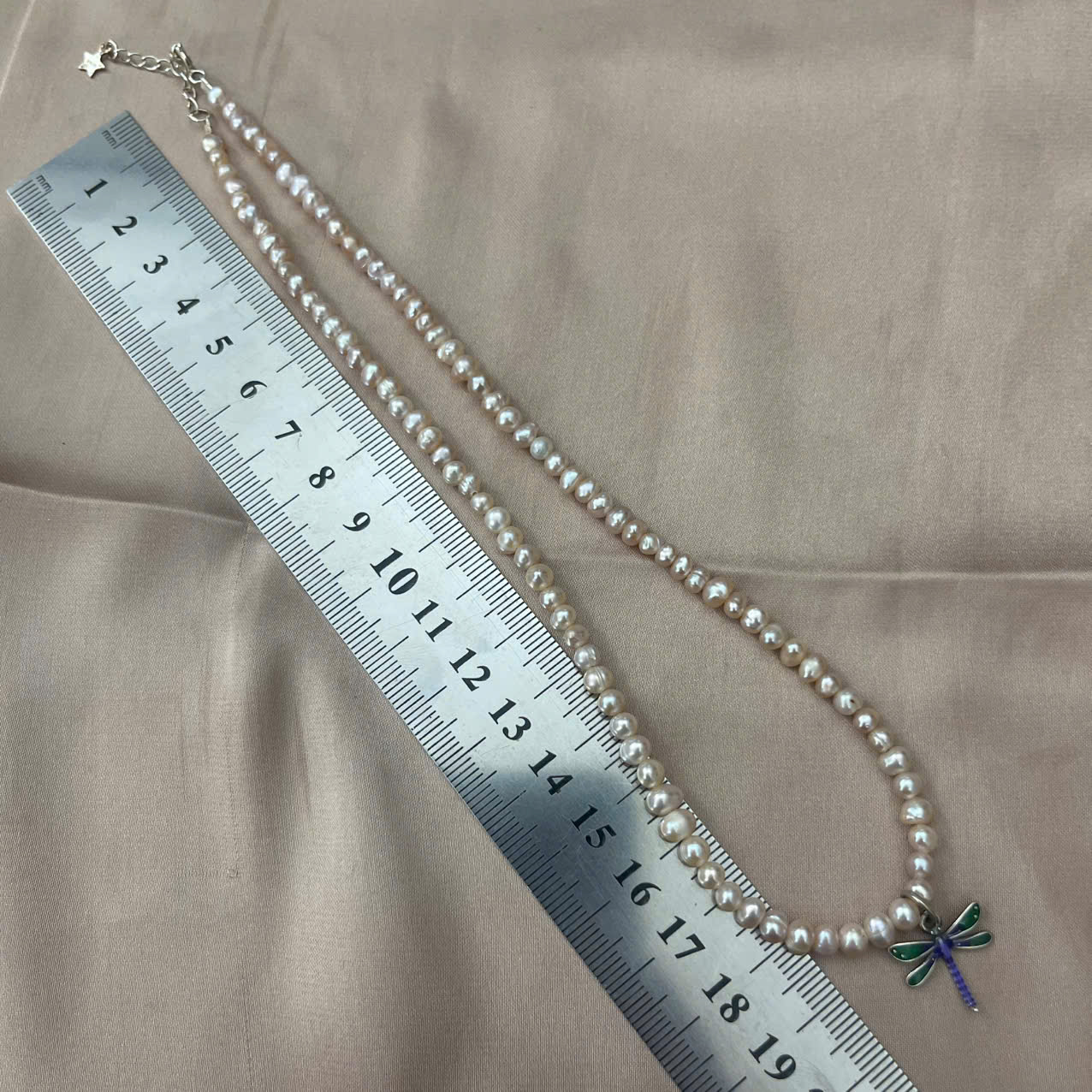 MS146 - Vòng cổ ngọc trai ánh hồng mặt chuồn chuồn