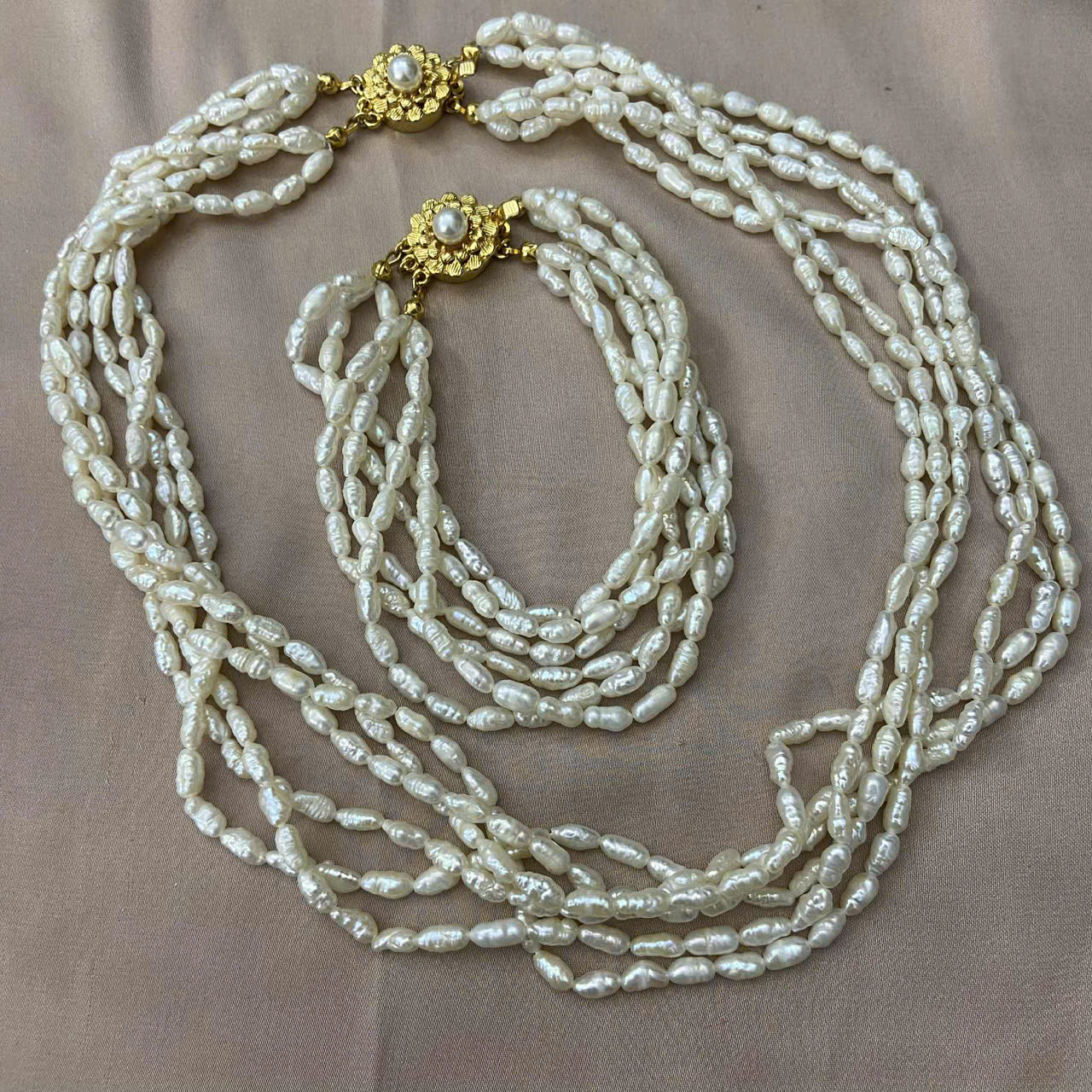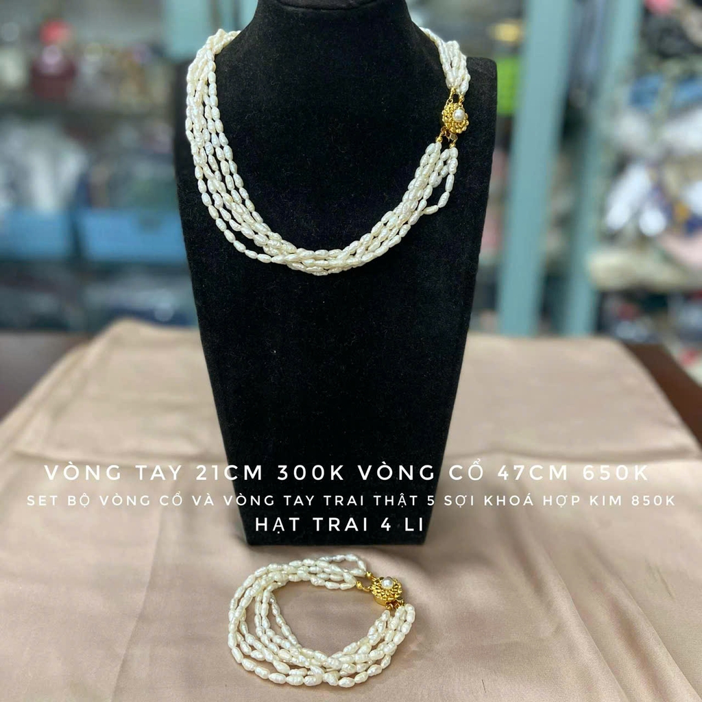 MS155 - Set vòng cổ và vòng tay trai gạo nhiều sợi