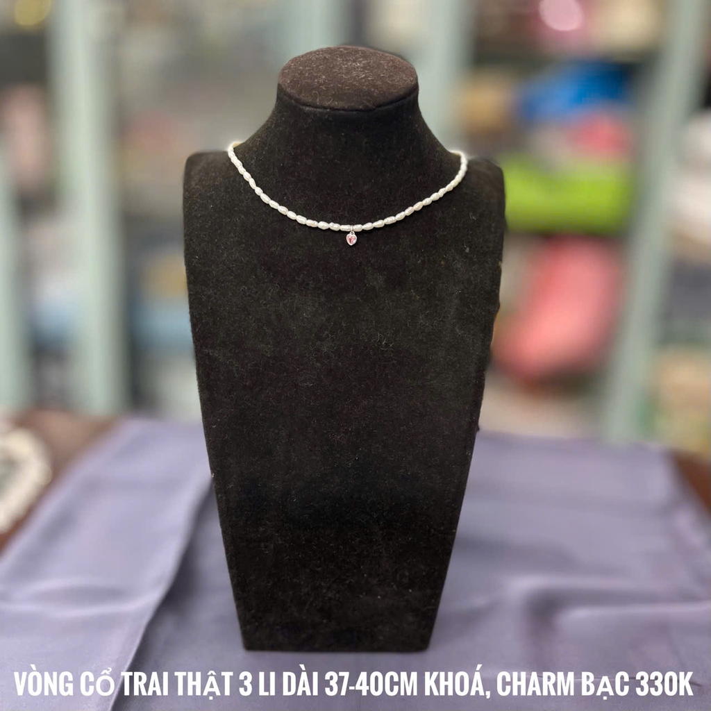 MS185 - Vòng cổ ngọc trai mặt charm trái tim bọc bạc