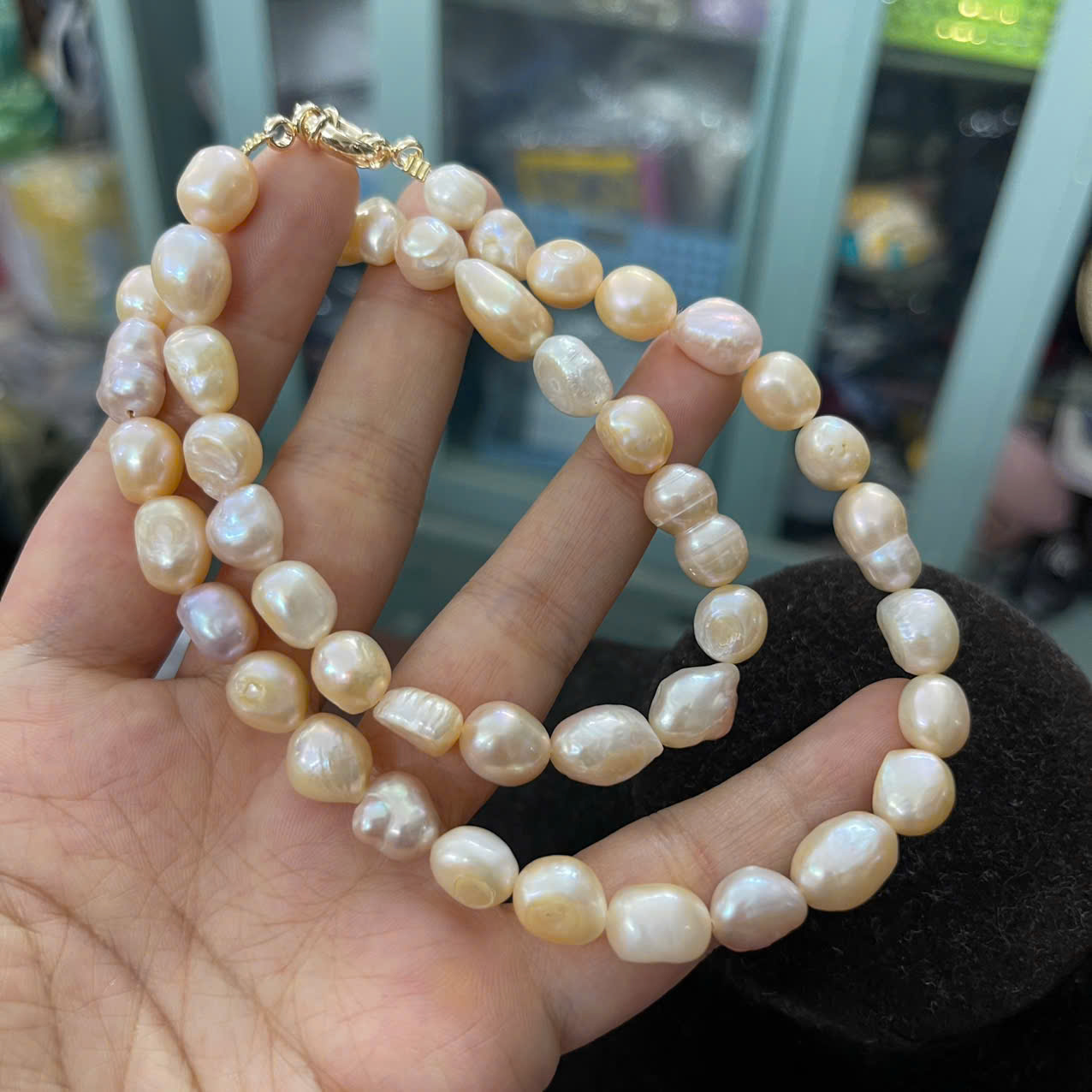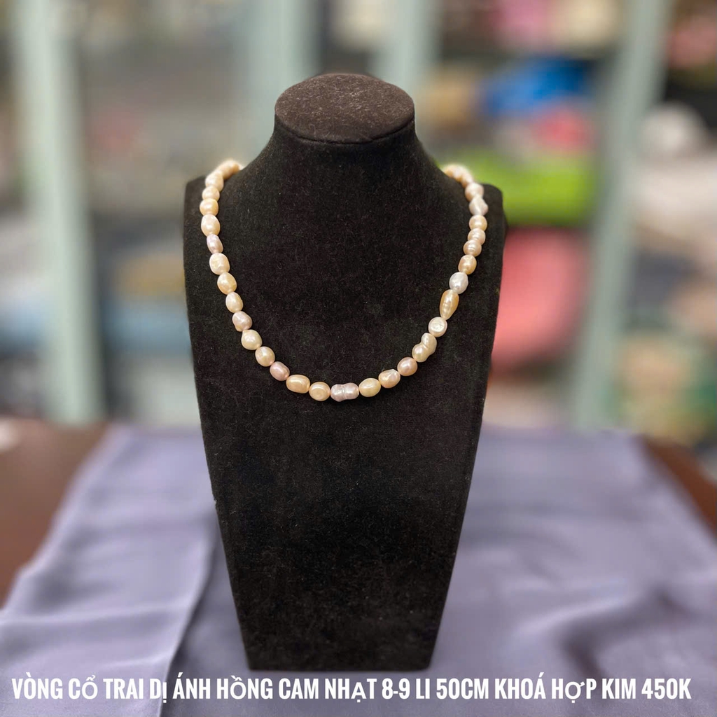 MS188 - Vòng cổ ngọc trai cam nhạt hạt dị size to