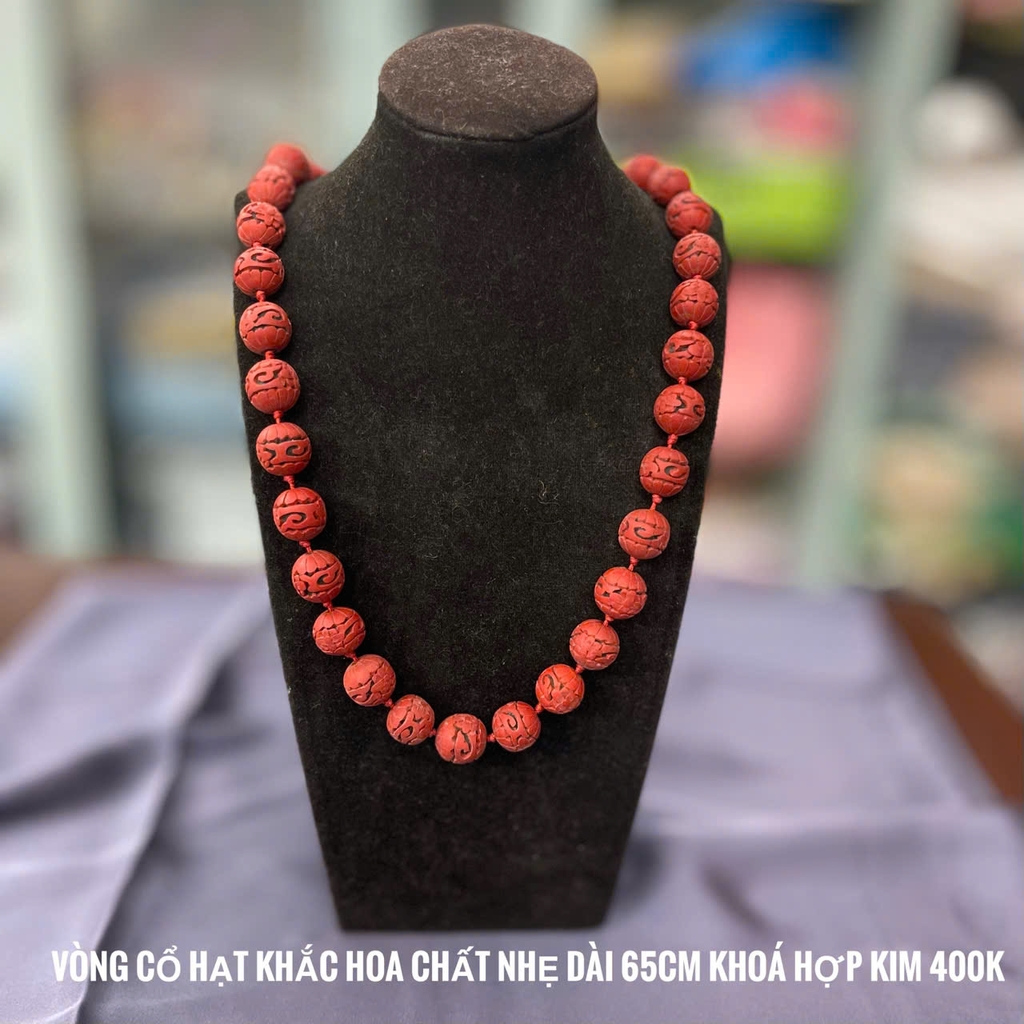 MS190 - Vòng cổ hạt đỏ khắc hoa