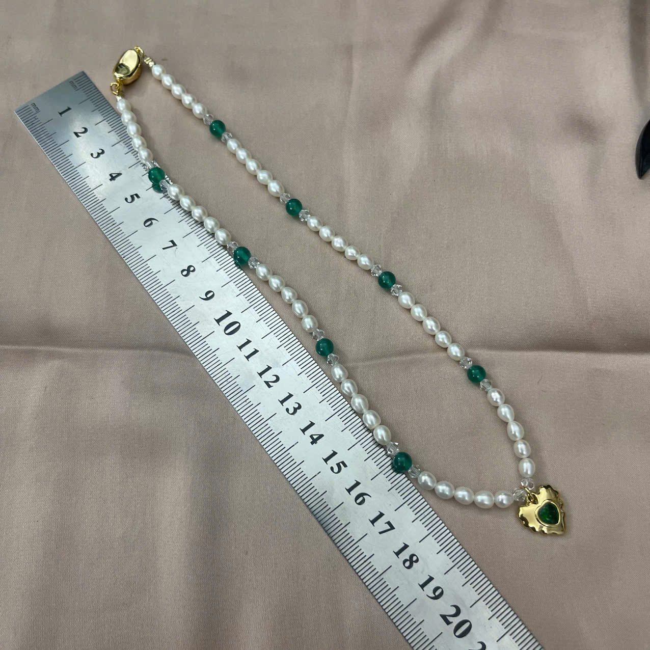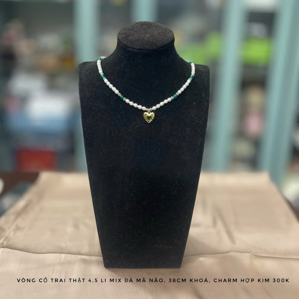 MS63 - Vòng cổ ngọc trai charm trái tim mix đá mã não