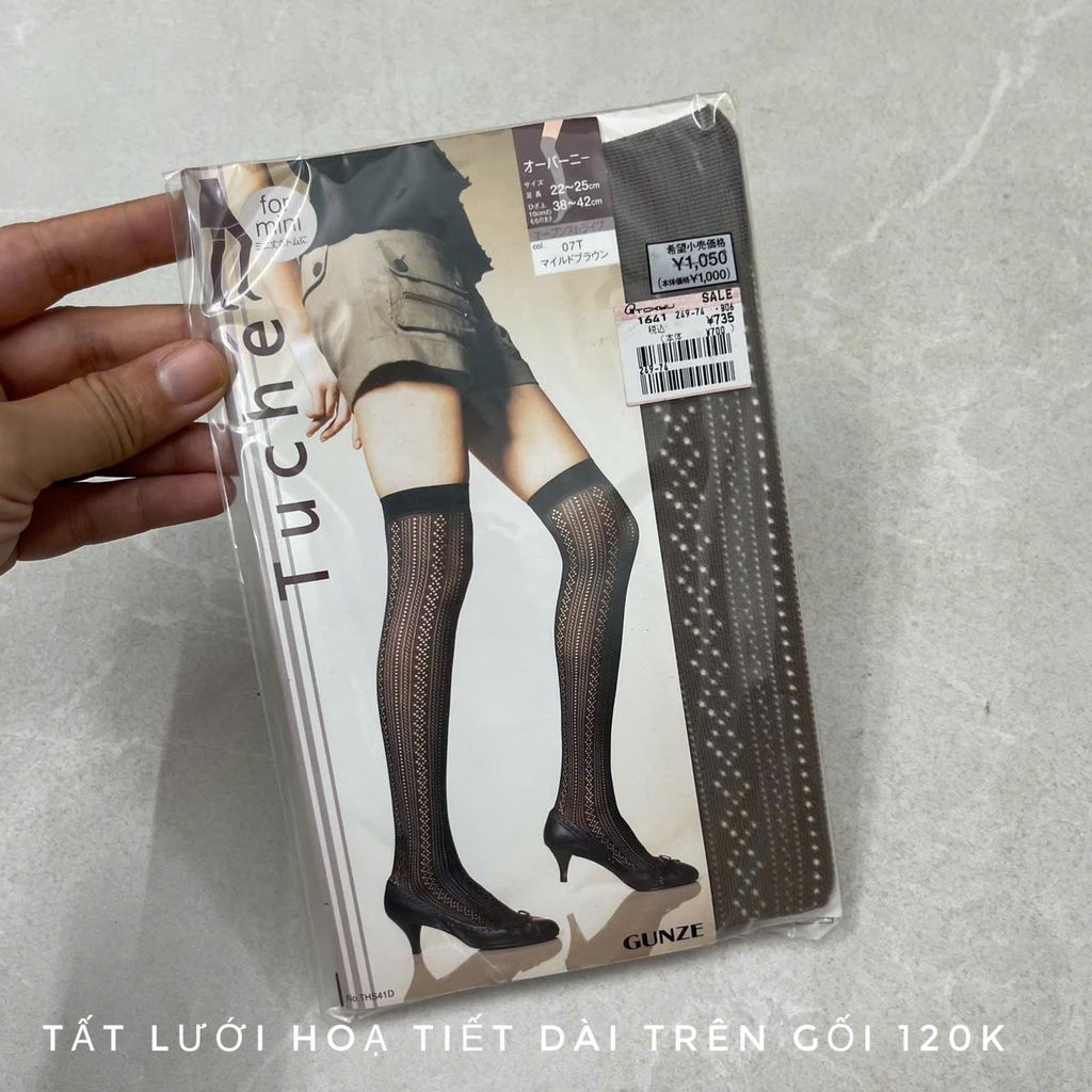 Tất lưới đen họa tiết, dài trên gối