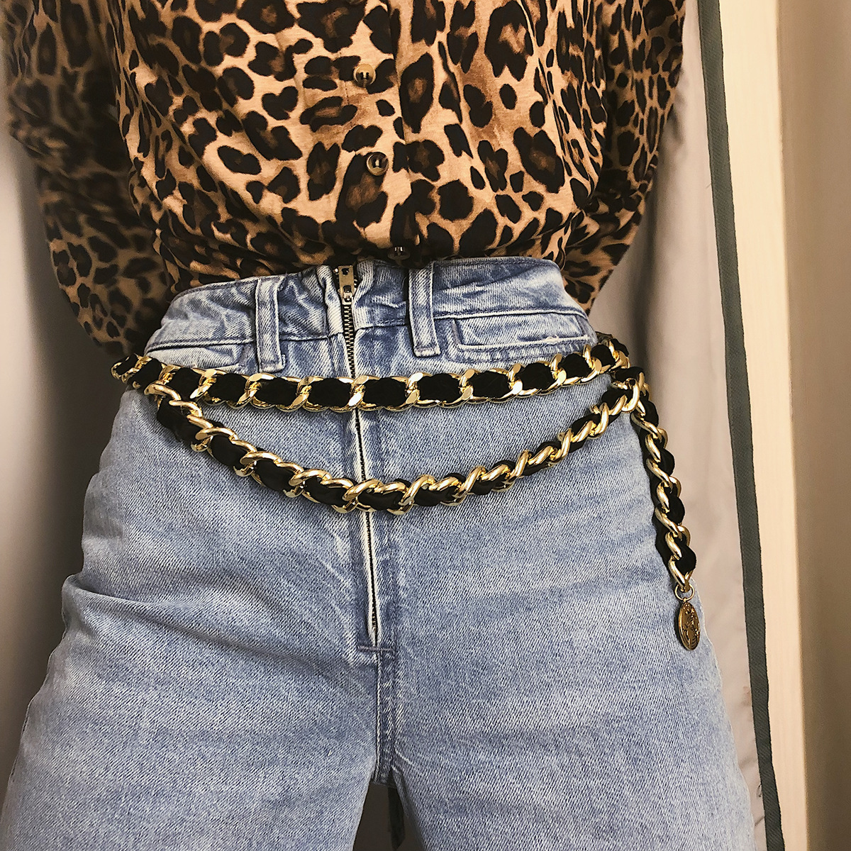 Thắt lưng thời trang - xích dài pha nhung
